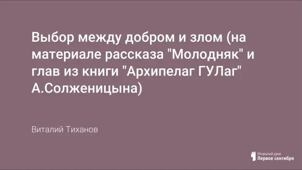 Нетрадиционный интегрированный урок-размышление в 10-м классе (история, литература, обществознание) служит формированию у учащихся представлений о добре и зле, решению нравственных проблем. Продолжительность – 2 часа.