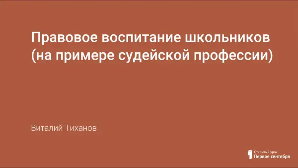 Вниманию учителей предлагается сценарий урока о судейской профессии. Ведущий и учащиеся задают приглашённым гостям много вопросов, связанных с ней. Подобные уроки расширяют кругозор школьников о работе правоохранительных органов и способствуют формированию у них правовой культуры.