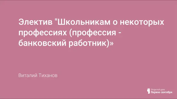 Стенограмма одного из занятий элективного курса "Школьникам о некоторых профессиях", проводимого в средней общеобразовательной школе, призванного помогать учащимся найти своё место именно там, где бы они наиболее хорошо себя чувствовали. На этот раз в гостях у школьников - банковские работники.