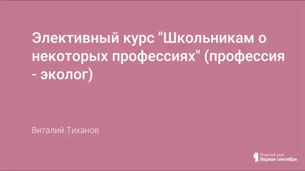 Вниманию учителей предлагается описание примерного занятия элективного курса для старшеклассников, посвящённое профессии эколога.