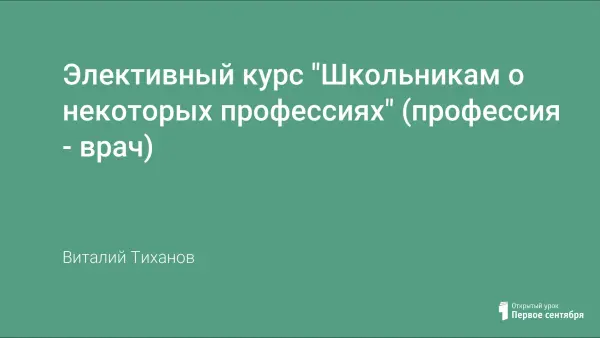 Вниманию учителей предлагается описание примерного занятия элективного курса для старшеклассников, посвящённое профессии врач.