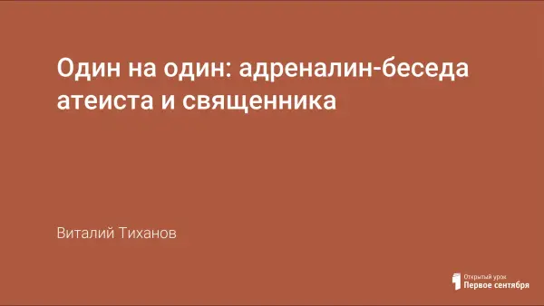 Вниманию учителей обществознания предлагается урок-диспут атеиста (учитель) и теиста (иерей Александр). Учащиеся 11-го класса присутствуют на своеобразном ток-шоу, имея возможность задать вопрос отцу Александру. Примерные подвопросы рассматриваемой темы: сущность религии и религиозное сознание, религиозный культ и религиозные организации, религия и мораль, религия в современном мире, свобода совести и вероисповеданий.