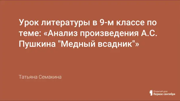 Учащиеся 9-го класса развивают умение давать характеристику главному герою на основе анализа произведения А.С. Пушкина "Медный всадник".