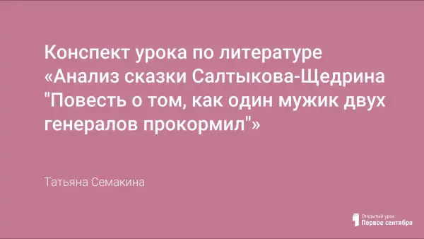 Предлагается конспект урока по литературе "Анализ сказки Салтыкова-Щедрина "Повесть о том, как один мужик двух генералов прокормил"". Предложенный материал может быть использован на уроках литературы и служить источником принципов, опираясь на которые, можно самостоятельно проанализировать текст.