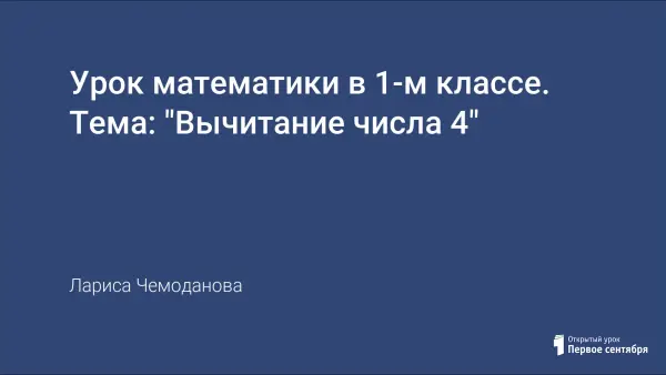 Урок, на котором закрепляем умение вычитать число 4; развиваем вычислительные навыки сложения и вычитания 1, 2, 3, 4; логическое мышление, математическую зоркость, умение вести математический диалог.