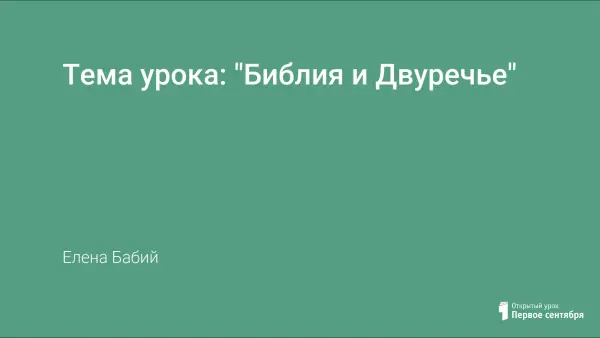 Урок является очередным по программе, предлагаемой Министерством образования и науки. Особенностью занятия стал принцип отношения к Библии, как к культурно-исторической ценности. Главная задача урока – подвести учащихся к пониманию связи библейских легенд и сказаний древнейших цивилизаций, что позволяет не только расширить кругозор, но и воспитывать толерантное отношение к истории и культуре других народов, к религии.