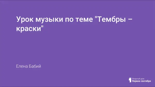 Урок музыки «Тембры-краски» проводится по программе В.В. Алеева, Т.Н. Кичак во 2-м классе в IV четверти. Цель урока – сформировать понимание роли тембров в развитии музыкального образа. Использование таких приемов и методов, как артикуляционная разминка (на основе фонопедического метода развития голоса В.В. Емельянова) и метода моделирования, способствуют активной и результативной работе детей.