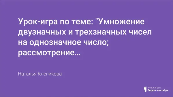 Урок проведен в форме игры "Счастливый случай", с использованием компьютерных технологий. Материал подобран и скомпонован так, что сначала с помощью первого, второго, четвертого и пятого геймов идет повторение и закрепление изученных тем. Основным является третий гейм, идет знакомство с умножением двухзначных и трехзначных чисел на однозначное число.