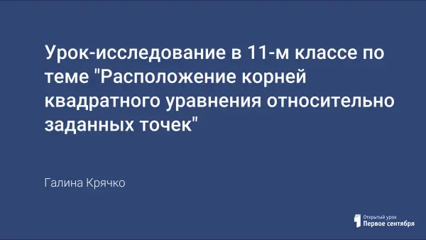 Исследование - способ применения старого знания для получения нового, является орудием получения научных фактов. Исследовательская деятельность связана с поиском ответа на творческую, исследовательскую задачу с неизвестным решением. Работа на уроке предполагает изучение теоретических вопросов, совместную исследовательскую деятельность. Учителем предлагается для исследования математический объект - квадратное уравнение. Учащиеся вправе самостоятельно выбирать пути, находить единомышленников, объединяясь в группы, и вести исследование по одному из путей: