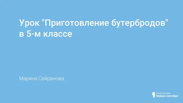 Урок «Приготовление бутербродов» в 5-м классе знакомит учащихся с историей хлеба, его видами и полезными свойствами. В процессе урока учащиеся узнают о видах бутербродов, какой формы они могут быть и многое другое.