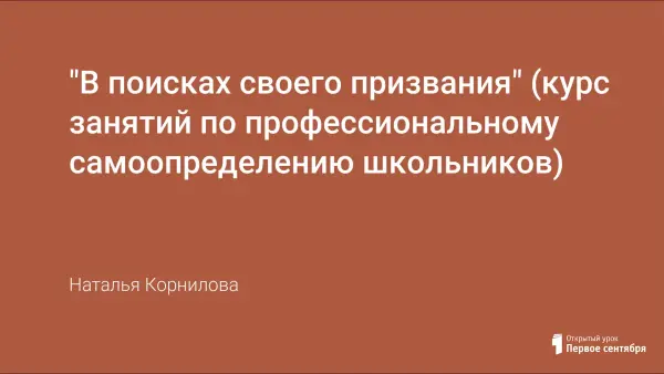 Краткий курс занятий по профессиональному самоопределению школьников.