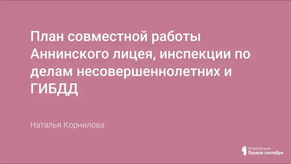 В статье представлен совместный план работы образовательного учреждения, РОВД, ГИБДД.