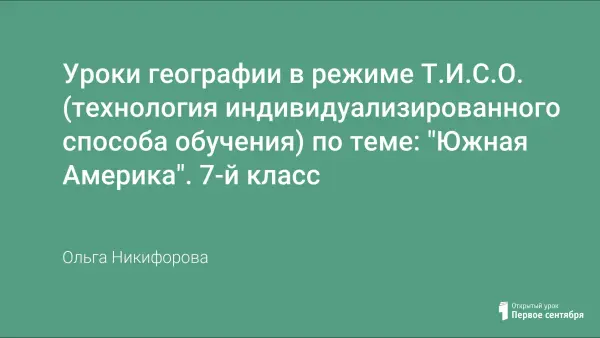 Тема разработана в режиме ТИСО (технология индивидуального способа обучения). Я работаю и изучаю данную технологию второй год. При составлении данной темы использовала приемы и методы критического мышления (кластер, Э.С.С.Э, метод ассоциации), а также поурочное планирование "География материков и океанов" Г.Н. Элькина.