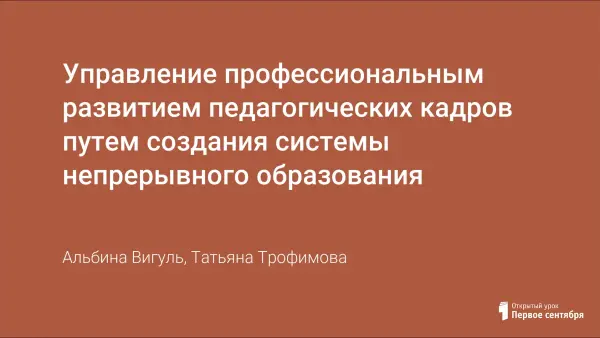 В данной статье главное внимание уделяется вопросам управления профессиональным развитием педагогических кадров путем создания системы непрерывного образования и условий для самореализации творческих возможностей педагогов.
