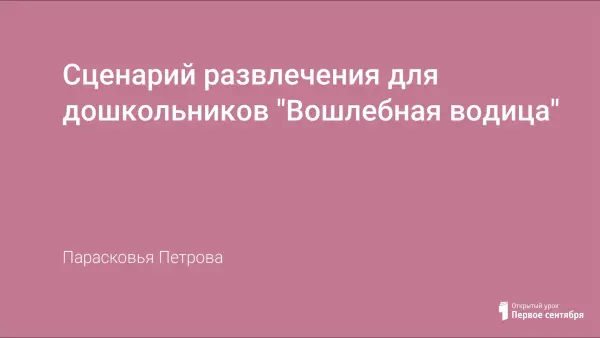 В представленном автором сценарии говорится о воде и ее пользе. Мероприятие сопровождается веселыми играми и танцевальными номерами.