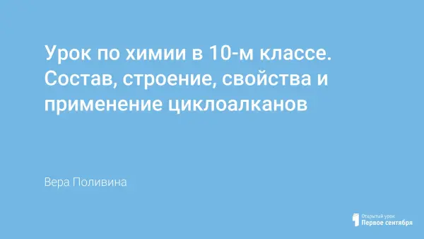 Урок химии в 10-м классе, рассчитанный на 2 часа по теме «Состав, строение, свойства и применение циклоалканов», разработан по методике развивающего обучения и принципам междисциплинарности, лежащим в основе педагогического процесса в гимназии.