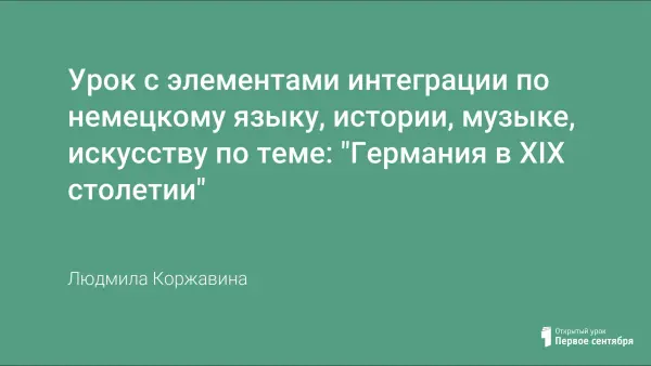 В нашей школе наиболее распространены интегрированные уроки по предметам естественно-научного цикла. Продолжая традиции школы, учителя иностранных языков активно развивают межпредметную связь иностранных языков и других школьных предметов. Выбор этих предметов обусловлен интересом учащихся к данным дисциплинам, общностью изучаемых тем. Исходя из вышеизложенного, был подготовлен и проведён урок с элементами интеграции по истории, музыке, литературе, искусству в 8-м классе по теме "Германия".
