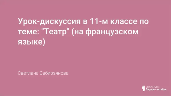 Предлагаемый учебный материал проведения урока-дискуссии в 11-м классе я применила при изучении темы "Театр" с целью обогатить знания учащихся, активизировать их творческую деятельность. Итогом явилась практическая работа на основе показа видеосюжета из школьного спектакля, где был осуществлен выход приобретенных знаний в практическую речь.