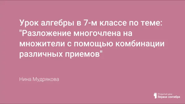 Данный урок позволяет учащимся рассмотреть разные приемы, выработать необходимые умения разложения многочлена на множители, увидеть практическую пользу данной операции и различных приемов для решения уравнений, сокращения дробей, рационализации вычислений. Это возможно при условии, если урок на постановку учебной задачи системы развивающего обучения сменит урок моделирования. Урок моделирования необходим для успешного решения практических примеров и выработке плана по последовательному применению разных приемов, созданию алгоритма успешной работы. Все это поможет учащимся овладеть основными алгоритмическими приемами разложения на множители многочленов разными способами.