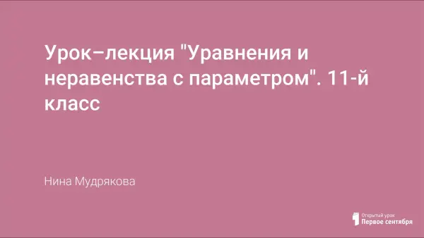 Обобщающий урок-лекция в 11-м классе помогает установить метод решения уравнений с параметрами, провести исследование уравнений, рассмотреть геометрическую интерпретацию. Это дает возможность систематизировать, обобщить знания, показать основные приемы решения уравнений с параметром.
