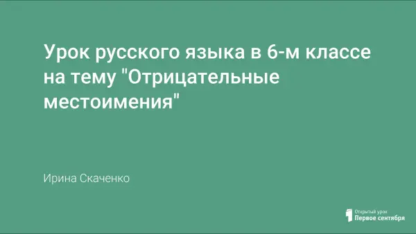 Цели урока: обобщение уже имеющихся знаний по теме «Местоимение»; выявить, что обозначают и как образуются отрицательные местоимения, сформулировать правила написания отрицательных местоимений.