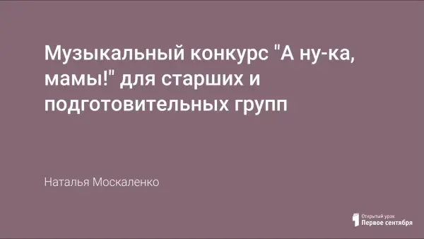 В процессе урока дети, вместе с родителями, учавствуют в музыкальном конкурсе "А ну-ка, мамы!".