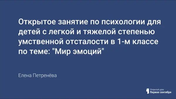 Открытое занятие по психологии в детском доме для детей с легкой и тяжелой степенью умственной отсталости с целью помочь ребенку научиться понимать эмоциональные реакции окружающих, правильно на них реагировать, понимать свои эмоции.