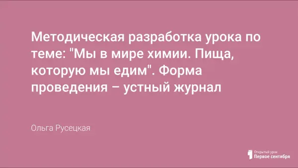 Предлагаемый урок – один из методических приёмов реализации прикладной направленности преподавания химии и развития социализации личности школьника. Проблема питания – очень актуальна в жизни каждого человека, поэтому учащиеся с интересом воспринимают содержание доклада "Что нужно знать, когда покупаешь продукты и готовишь пищу" и проводят анализ этикеток знакомых продуктов. В настоящее время наш рынок заполнен множеством продуктов, которые вредны для здоровья. И одной из причин ухудшения здоровья школьников является неправильное питание, употребление веществ, которых нет в природе, – химикатов. К ним относятся многие пищевые добавки. Реализация задач урока по теме "Пища, которую мы едим" способствует формированию у школьников мотивации на здоровый образ жизни, решая тем самым некоторые задачи здоровьесберегающей технологии, а учитель химии вносит свой вклад в развитие валеологической культуры школьника.