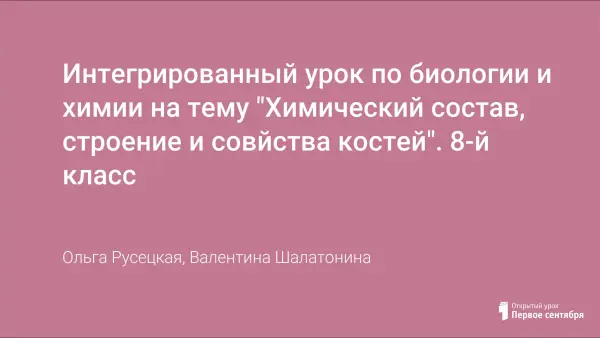 Интегрированный урок по биологии и химии на тему "Химический состав, строение и совйства костей". 8-й класс