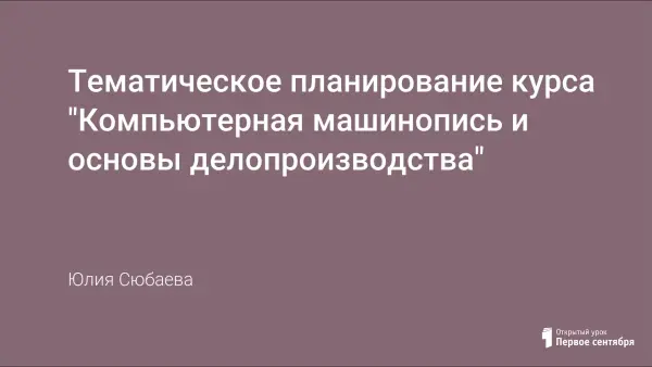 Тематическое планирование курса "Компьютерная машинопись и основы делопроизводства"