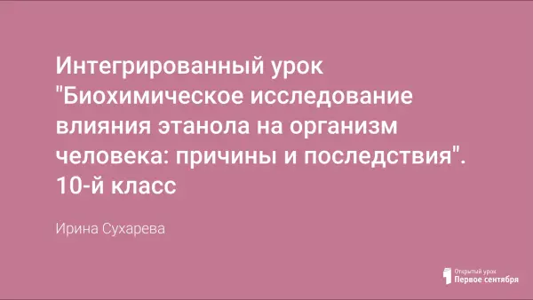 Интегрированный урок с элементами проблемного обучения позволил учащимся 10-го класса исследовать биохимические процессы денатурации белков в организме под влиянием этилового спирта. На уроке не преследуется цель открыто и навязчиво говорить учащимся, что спирт - это яд и употреблять алкогольные напитки вредно. Как правило, такая постановка вопроса вызывает обратный - отрицательный - эффект. Задача состоит в создании для учащихся ситуации выбора - употреблять или не употреблять алкоголь.