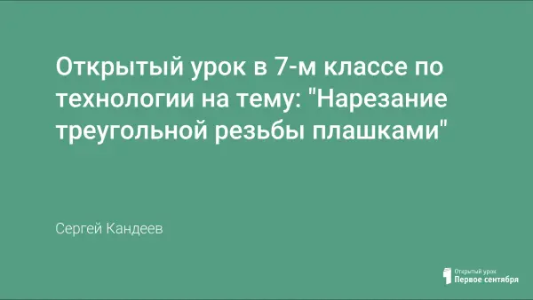 Урок технологии для 7-го класса. Урок дает представление о резании и режущем инстременте, учит приемам нарезания наружной резьбы.