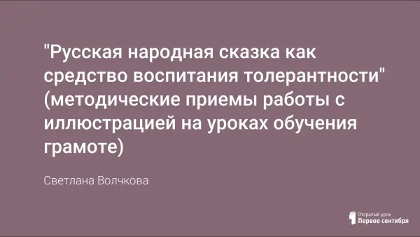 "Русская народная сказка как средство воспитания толерантности" (методические приемы работы с иллюстрацией на уроках обучения грамоте)