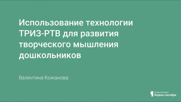 Технология ТРИЗ-РТВ - ключ к воспитанию творческой, нестандартно мыслящей личности. Цель занятий с использованием технологии ТРИЗ-РТВ: дать малышам комплексный подход к решению любых вохникающих проблем, научить мыслить системно.
