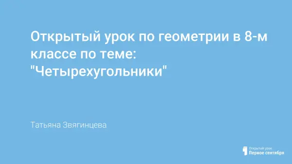 В материале представлена разработка открытого урока, который систематизирует и обобщает сведения о четырёхугольниках, изучаемых в курсе геометрии 8-го класса.