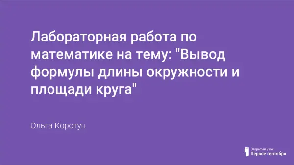 Данный урок является нетрадиционным, что особенно нравится детям любого возраста. Практика показывает, что получение или вывод формул "своими силами" прочно запоминается ввиду своей наглядности, четко простроенной цепочки выводов. Для учащихся 5–6-х классов формулы длины окружности и площади круга - одни из первых, которые надо прочно запомнить. Так пусть дети их выведут сами!