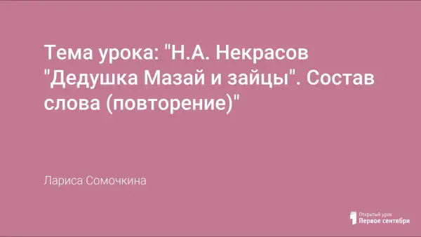 Тема урока: "Н.А. Некрасов "Дедушка Мазай и зайцы". Состав слова (повторение)"