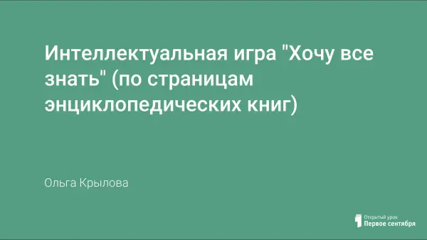 В школе ученик получает знания, развивает свои способности, формирует собственные ценности. Часто ученику приходиться готовить сообщения по каким-либо темам урока, материал к которым можно найти в энциклопедиях. Как же научить ребёнка работать с такой серьезной литературой? С этой целью разработана игра "Хочу всё знать", которая проводится на протяжении нескольких недель. Принимая участие в игре, дети учатся работать с энциклопедической литературой, находить ответы на многие вопросы. Полученные знания в дальнейшем они успешно используют и для написания школьных рефератов