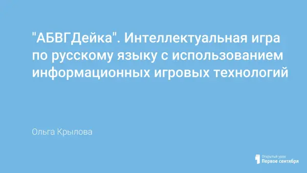 Представленная игра "АБВГДейка" по русскому языку составлена на основе тем курса русского языка за 1-й класс. "АБВГДейка" – командная игра. Она имеет большое образовательное и воспитательное значение. В процессе игры первоклассники учатся самостоятельно решать игровые задачи, находить лучший способ задуманного, пользоваться своими знаниями, выражать их словом. Соревнуясь, дети общаются со сверстниками, каждый стремится поделиться своими мыслями, а также утвердить свой авторитет среди одноклассников.