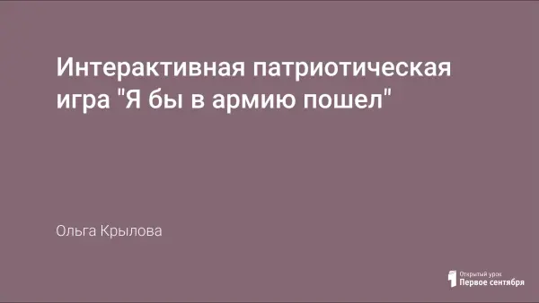 Уже несколько десятилетий мы верны традиции широко и всенародно встречать праздник защитника Отечества и отмечать его с особой торжественностью и теплотой. Патриотическая игра представлена в двух вариантах: с использованием информационных технологий и без возможности их использования.