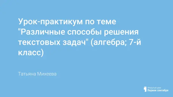 Представлен конспект урока-практикума по теме: Различные способы решения текстовых задач". Алгебра 7-й класс.