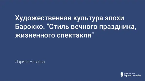 Это первый урок по изучению художественной культуры эпохи барокко, в которой отразились грандиозность и пышность, интенсивность чувств, пристрастие к эффективной зрелищности. Цель данного урока познакомить учащихся 11-го класса с художественным направлением XVII века, его характерными особенностями, архитектурными и скульптурными шедеврами Л.Бернини и Растрелли, а также произведениями Рембрандта и Караваджо.