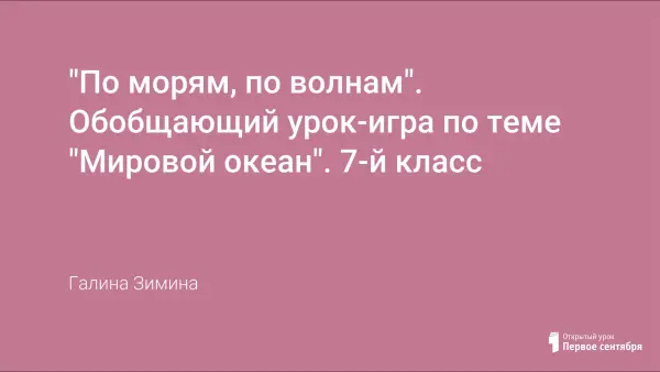 Урок позволяет организовать деятельность учащихся, связанную с познанием Мирового океана. Закрепить и расширить знания о процессах, происходящих в океане, о взаимодействии океана с атмосферой и сушей. Данная форма урока позволяет в ненавязчивой форме расширить и углубить знания, умения и навыки, полученные при изучении начального курса географии, развивать познавательные интересы, эмоциональную сферу личности учащихся, используя интересный дополнительный материал.