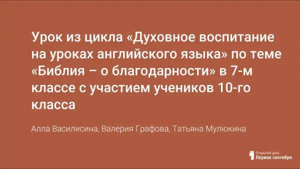 Урок из цикла «Духовное воспитание на уроках английского языка» по теме «Библия – о благодарности» в 7-м классе с участием учеников 10-го класса