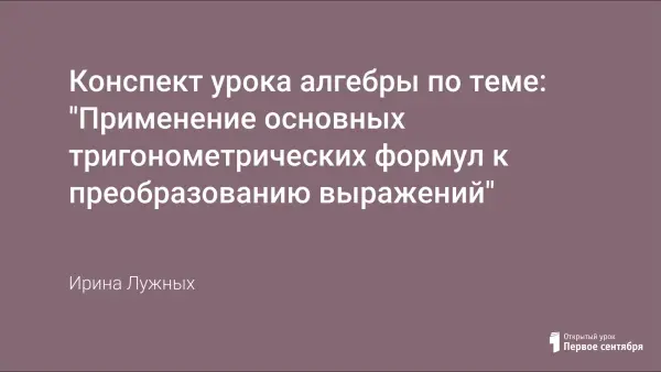 Урок математики направлен на формирование и закрепление умения применять основные тригонометрические формулы для преобразования выражений.