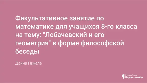 Занятие проводится в форме философской беседы. Его целями являются: расширение границ восприятия мира и себя, развитие способности отвлеченного мышления, воспитании упорства, дерзости мысли, как одной из составляющих гениальности человека.