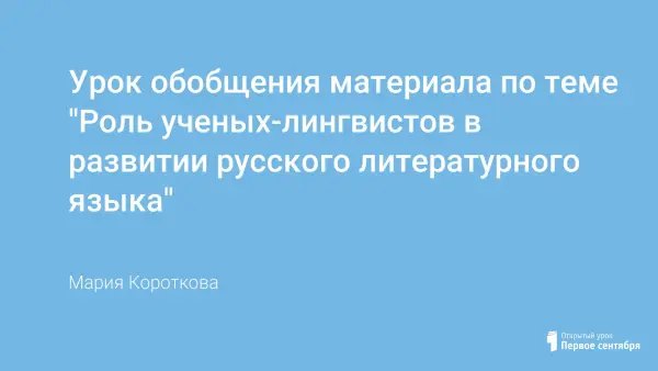 Урок обобщения материала по теме "Роль ученых-лингвистов в развитии русского литературного языка"