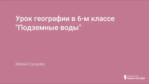 Цели урока: установить причины образования различных видов подземных вод; развивать умение видеть взаимосвязи компонентов природы, формулировать выводы; воспитывать любовь к природе и родному краю.
