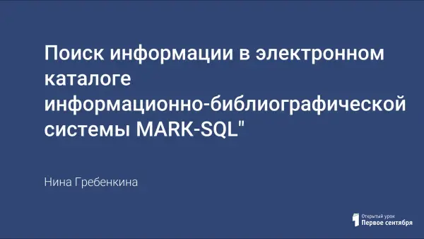 Мы живем в информационном обществе, поэтому должны владеть культурой работы с информацией, уметь осуществлять ее поиск в различных источниках. Интегрированный урок по библиотечно-библиографической грамотности и информатике позволяет сформировать одну из важных составляющих информационной культуры - умение самостоятельно осуществлять поиск литературы в электронном каталоге школьной библиотеки, работающей в среде АИБС MAPK-SQL.