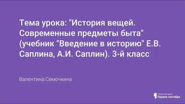 Своим уроком я хотела показать через историю вещей, повседневную жизнь человека, познакомить с историей отдельных предметов, их эволюцией от древности до наших дней. Помочь избежать опасностей в обращении с современными предметами быта.